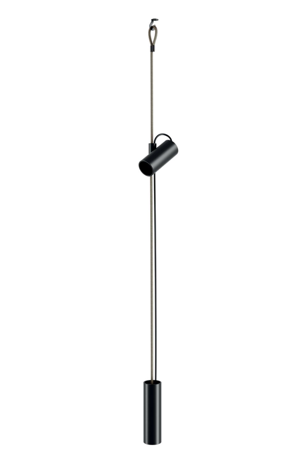 Inspired by the function of the jam cleats found in sailing boats, Cima —a nautical rope in Italian— is a "suspended” lamp characterised by a ceiling-to-floor rope, a sleek and highly functional design element. A joint that holds the lamp body slides vertically along the rope, while the counterweight allows to manage any excess rope. The simple cylindrical shapes and the black colour of these elements highlight the three brilliant finishes of the rope, vibrant accents to suit any interiors and décor mood.